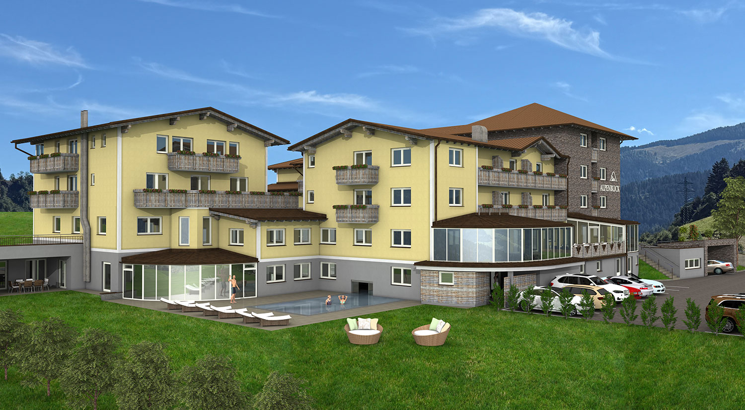 In mehreren Umbauphasen wurde die damalige Pension Alpenblick nach und nach umgestaltet und renoviert. Mittlerweile ist des Bestandsgebäude von Grund auf saniert und aus der Pension ist ein 60 Betten Hotel entstanden. Die letzte Erweiterung erfolgte im Frühjahr 2025.