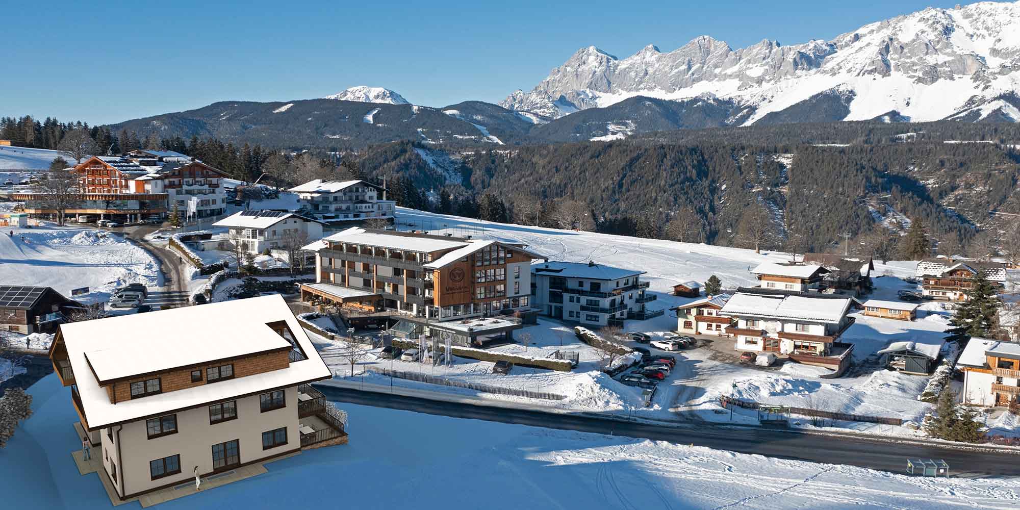 Hier entsteht das Appartementhaus der Familie Trinker im Rohrmoos mit 5 Appartements inkl. Tiefgarage.