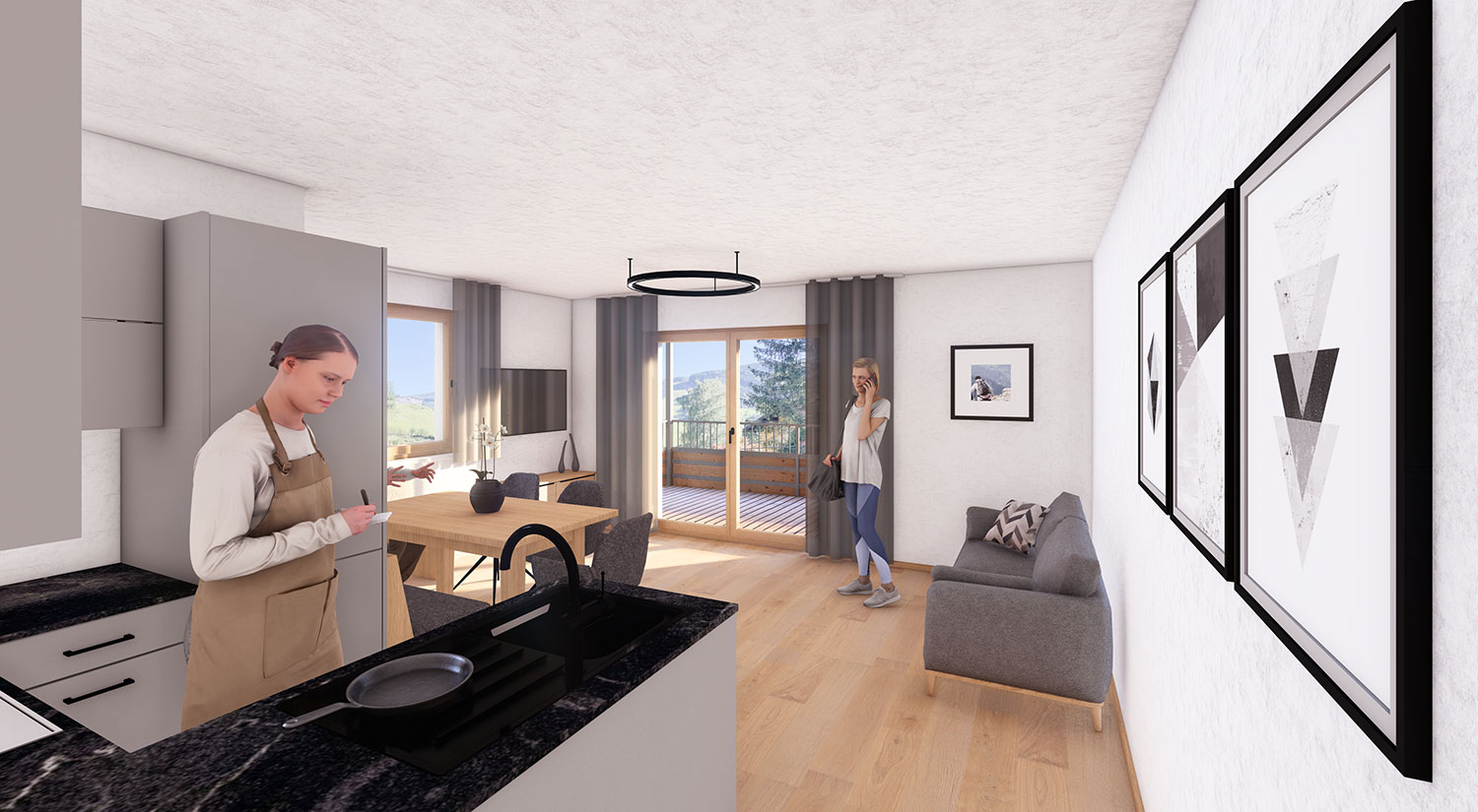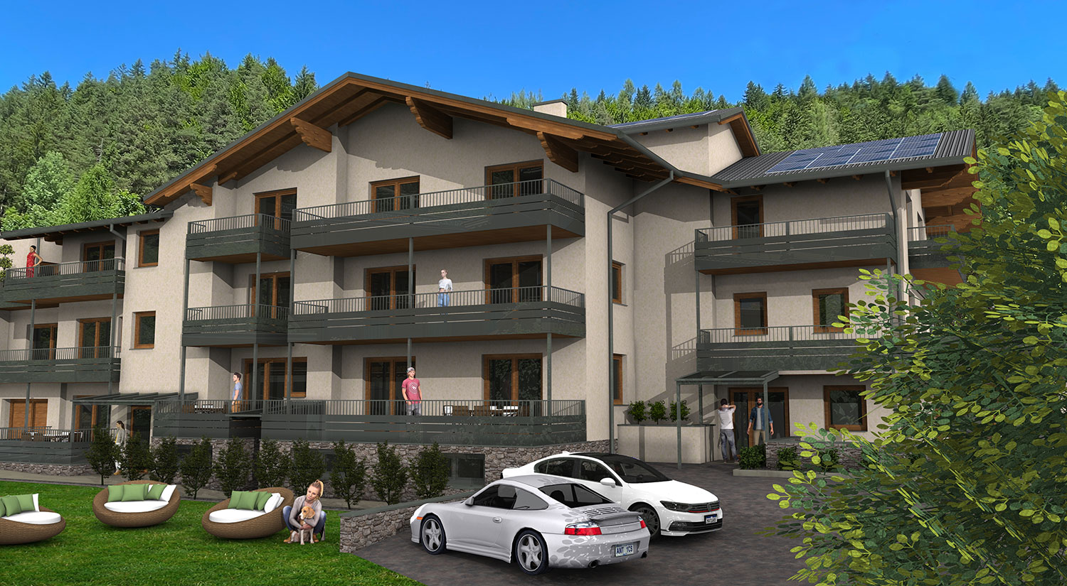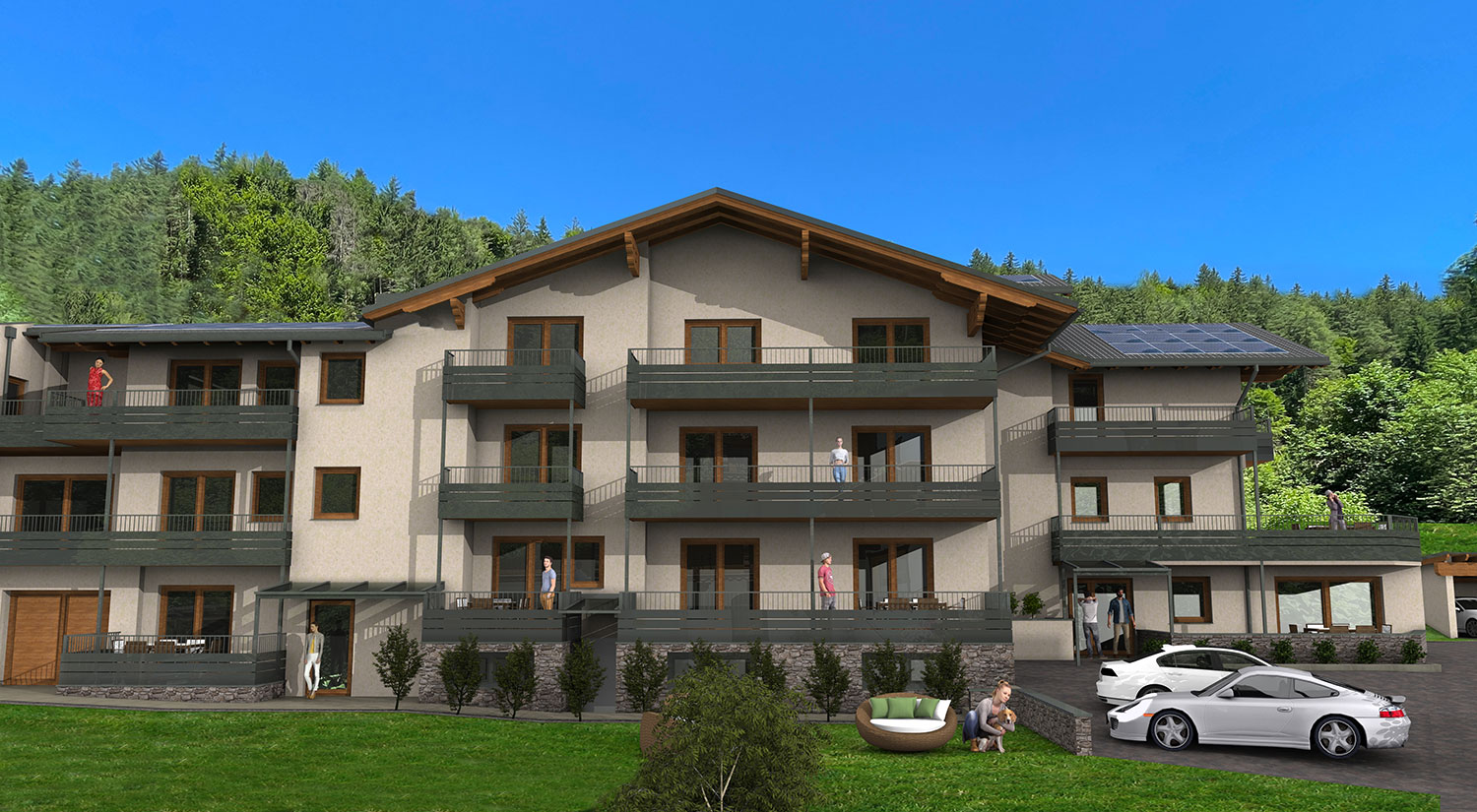 Aus dem bestehenden Pensionsgebäude entstehen durch den Um- und Zubau 13 neue Appartements in verschiedenen Größen.